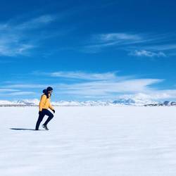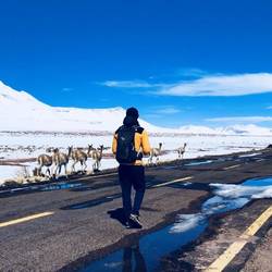Aujourd’hui c’est dans un décor idyllique que nous nous réveillons, le ciel est bleu et nous sommes en plein milieu du désert, entourés par les volcans. Ce matin on prend le temps d’apprécier le paysage, petit bain de soleil, assis sur nos sièges en dégustant notre petit déjeuner. Levés vers 10h, on décolle vers 12h, direction les deux lacs que l’on a pas pu visiter hier, le temps aujourd’hui est sublime, nous espérons que la route sera cette fois ci ouverte. En chemin, nous ferons un peu de drone, le paysage est tellement magique ... Une fois arrivés sur place, malheureusement, par endroit, la route est recouverte de neige. Nous ne tenterons pas le diable, la voiture doit rester telle qu’elle pour la vendre au meilleur prix, dans quelques semaines, à Santiago. Malgré les 14 kms qui nous séparent de ces lacs, nous décidons d’y aller à pied. Rien de telle qu’une bonne balade, dans ce cadre alpin, pour se sentir vivre et respirer le grand air. Pierre sera cette fois moins téméraire et restera à la voiture. Nous nous habillons donc chaudement et partons en expédition ! Aucune voiture n’emprunte la route, nous sommes donc seuls au monde, face à cette route rectiligne interminable, qui ressemblerait à s’y méprendre à la route 66, aux USA. Quand je dis seuls au monde, en fait pas vraiment ... Nous sommes escortés par une colonie de vigognes, une espèce de mammifères d'Amérique du Sud qui vit sur les hauts plateaux de la cordillère des Andes. La laine de sa toison particulièrement fine est utilisée pour fabriquer des vêtements de luxe. C’est juste magique, nous sommes dans un endroit paradisiaque et profitons de la compagnie de ces êtres attendrissants, pendant plus d’une heure. Nous poursuivrons notre chemin à travers la neige (en chaussures de trail), pour gravir la colline et tenter de distinguer au loin, les fameux deux lacs. Malheureusement le temps joue contre nous, nous sommes partis depuis un moment et Pierre nous attend dans la voiture. De plus la hauteur de neige est importante, avec les rochers ça devient dangereux, on ne sait pas toujours où l’on marche. Nous décidons de faire demi tour, tant pis pour les lacs, ça n’est pas le moment de se blesser. Nous prenons quand même quelques clichés en drone et repartons jusqu’à la route. Là encore nous sommes escortés par un vigogne solitaire. C’est incroyable de voir à quel point ils ne sont pas craintifs, ils gardent tout de même une certaine distance de sécurité. Nous ferons donc 1 h de chemin avec lui avant de rejoindre la voiture. Nous racontons à Pierre notre épopée et repartons là où nous étions hier afin de prendre la revanche à la pétanque. Cette fois si c’est Romain qui remportera le match 2 à 0, victoire nette et sans bavure. Nous rentrerons sur San Pedro de Atacama en profitant d’un magnifique coucher de soleil. Une fois sur place, nous allons nous restaurer du meilleur burger de la ville, avant d’aller boire un verre dans un bar. Là nous profitons de deux concerts, un de rock et un de musique local et allons nous coucher peu après. Encore une magnifique journée avec des souvenirs inoubliables plein la tête...En savoir plus