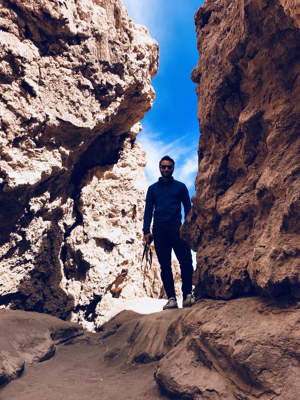 Après des semaines de stage préparatoire intensif et une batterie de tests à n’en plus finir, nous faisons enfin route vers l’espace. Et oui vous ne rêvez pas, on quitte les shorts et les doudounes, ainsi que notre beau 4x4, pour le costume de cosmonaute et la navette spatiale internationale, puis le satellite Let’s treep!. Destination la lune 🌒 🌓 🌔 !!! Le décor est irréel, dans nos rêves les plus fous, nous n’aurions pas imaginé vivre cela un jour. J’exagère un peu mais on pourrait vraiment s’y croire c’est bluffant. Les couleurs sont sublimes, la roche est rougeâtre, par endroit de petits cristaux de sel recouvrent les parois. Nous passons à travers des crevasses et des canyons c’est plus que dépaysant, l’expérience est unique. Nous ferons plusieurs sites sous forme de circuit, l’entrée de cette vallée coûte seulement 4,5€. Le premier stop se fait en mode spéléologie, en autonomie avec les frontales, les formes sont surprenantes, parfois des stalagmites, parfois des parois de cristal lisse, poli par l’érosion du temps. Les chiliens n’ont pas la vision business, mais ils pourraient très bien prêter des costumes de cosmonautes pour que les touristes fassent des photos et construire une petite navette faite d’aluminium pour donner l’illusion d’être à la conquête de la lune. Bref c’est la nature à l’état pur, il n’y a pas un chat et c’est aussi bien comme ça. Nous ferons par la suite un mirador avec une vue cette fois panoramique, le décor est vraiment à couper le souffle, rajouté à cela la cordillère des Andes en second plan, c’est magique. On restera là un moment pour prendre le temps d’apprécier ce cadre peu commun. Le lieu est assez peu visité, c’est vraiment agréable ! On pourrait y rester des heures, des jours ... C’est sûrement un des plus beaux sites que nous ayons visité depuis le début du voyage, si ce n’est le plus beau. Nous nous arrêterons face à une colline rougeâtre, ressemblant à un amphithéâtre grâce à sa forme courbée (5ème photo), c’est assez impressionnant. Nous finirons en apothéose par le coucher de soleil sur un point de vue en hauteur. Déjà que les couleurs étaient sublimes, mais là il n’y a pas de mots, l’instant est juste majestueux ! Nous rentrerons les yeux ébahis par nos visions. Nous avons normalement une soirée spatiale avec un tour, pour observer les étoiles, les planètes et observer la voie lactée, mais le ciel est couvert, le tour sera donc annulé. Il sera reporté à demain, en espérant que cette fois le temps soit plus clément ! On croise les doigts 🤞.En savoir plus