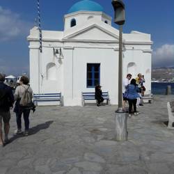 Die Kirche gehört zum Kloster Panagia Tourliani. Gegründet 1542, wurde es im 16. Jhd. von Piraten geplündert.