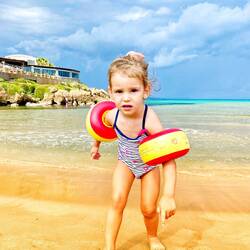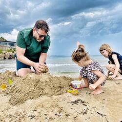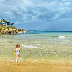Heute was er ziemlich regnerisch und stürmisch, somit genossen die Mädels den Kidsclub und am Nachmittag den Strand mit Papa und Sandburgen bauen