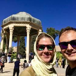 Afterwards we walked into the bazaar (mostly for the shade not for the wares) and reached a shrine on the northern side of the (dried out - like many others we have seen so far) river. Anna got another chador to wear and we were allowed to take pictures of the blinking mirrors inside. We then made it even further outside of the center and went to the mausoleum of famous Iranian poet Hafez. Essentially, it is a park with an octagonal pavilion housing the tomb. It was okay...