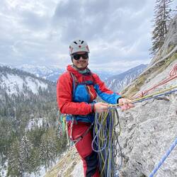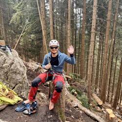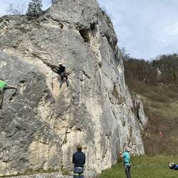 Bei herrlichen fast 30 Grad (und starkem Föhn) war heute mal wieder Klettern dran. Wir entschieden uns für Sportklettern an einer netten Nordwestwand im Chiemgau: Burgau!