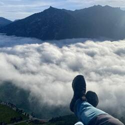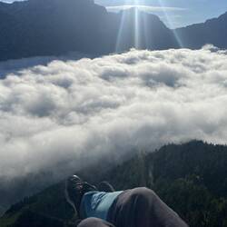 Heute war auch ein wunderbarer Tag! Anna stand früh auf und machte vor dem Kurs noch schnell eine Bergtour um bei Wolkenstimmung über den See zu fliegen!