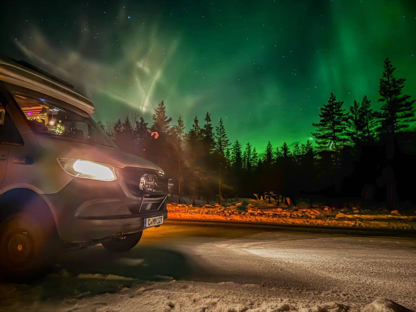 ... und direkt mit Polarlichtern in einer Wolkenlücke begrüßt ✨🤗🤩