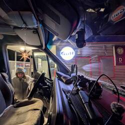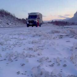 Der Morgen beginnt mit Regen und extremem Tauwetter. Im Umkreis von 300 km sieht es nicht besser aus und Sturm kommt auch noch hinzu, was wohl schon einen Bus von der eisglatten Straße abgebracht hatRead more