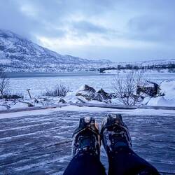 Bis in die Früh knipsen wir aus dem Bett heraus weiter Polarlichter -- entsprechend spät steigen wir am Morgen, bzw. fast gegen Mittag, aus dem Bett 🫣😴