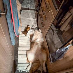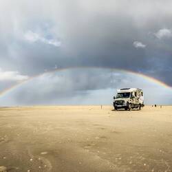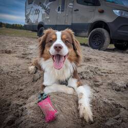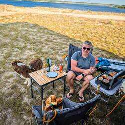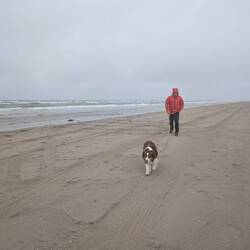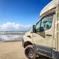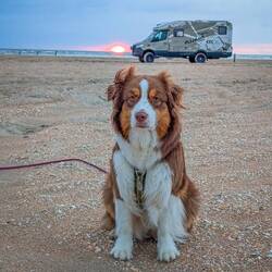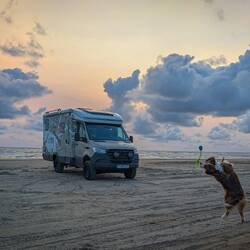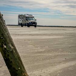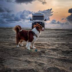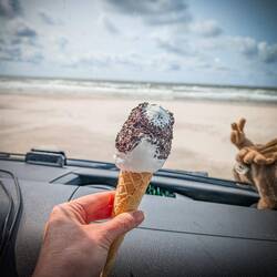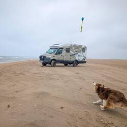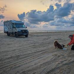 Bei strahlendem Sonnenschein geht's wieder zurück. Fix am Strand einparken, ne Runde Gassi und dann müssen wir Abendessen besorgen, denn Küchenschluss ist halb Acht 😱