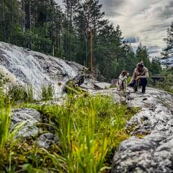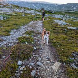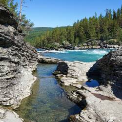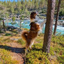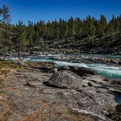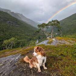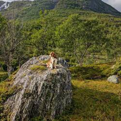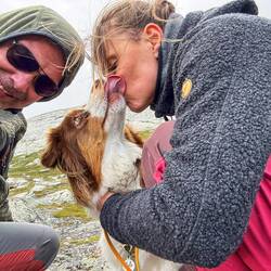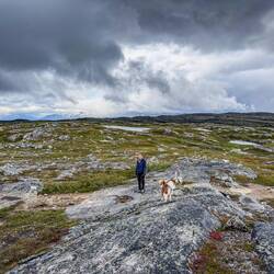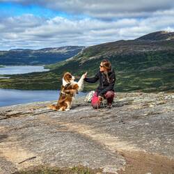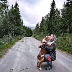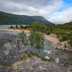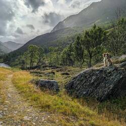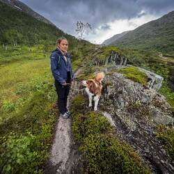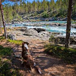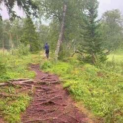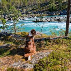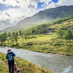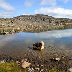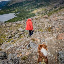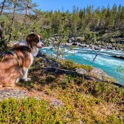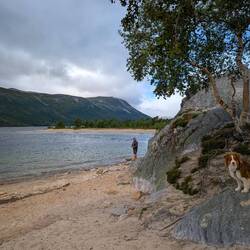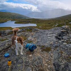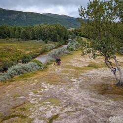 Es regnet und regnet, aber wir sind tapfer, schmeißen uns in die Regenklamotten und wandern entlang des Flusses am Børgefjell. Für Aili war es ein riesen Spaß: Pfützen, Schlamm, frisches Gras undEn savoir plus