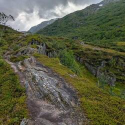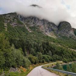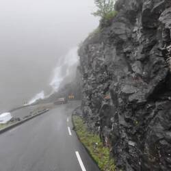 Das Wetter scheint zunächst recht gut, doch ab 700 m.ü.M. geht's wieder durch die Nebelfront -- nicht so ganz ideal für das was kommen wird 🫣 Der Aufstieg auf dem Aursjøvegen von Eikesdalen ausEn savoir plus