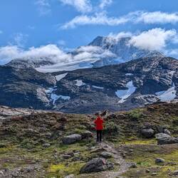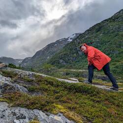 Das Wetter sieht gut aus und so brechen wir gegen Mittag bei 4°C auf, um den Breen zu besichtigen. Eine einfache Wanderung haben sie gesagt und obwohl einschlägige Wander-Apps eher mittelschwerEn savoir plus