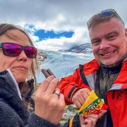 Wir haben es tatsächlich geschafft und wie von den unterwegs angetroffenen norwegischen Wanderern prophezeit, ist der Anblick wunderschön. Wir bleiben eine Weile hier oben und genießen einfach nur 🥰