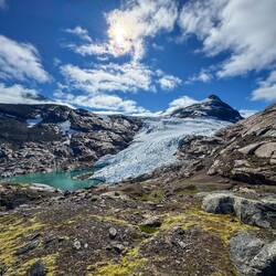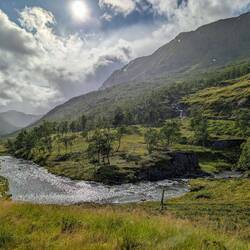 Nach einem tollen Abend mit grandiosem Ausblick und einer super ruhigen Nacht, werden wir am Morgen von der Sonne wach geküsst ☀️ Wir tingeln daher nur langsam den Jotunheimvegen weiter undEn savoir plus