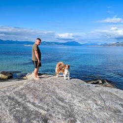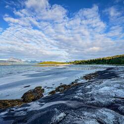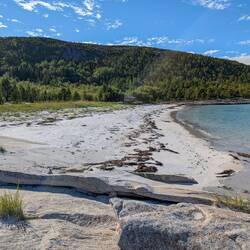 Wieder auf öffentlicher Straße angekommen, kommen wir aus dem Staunen nicht wieder raus: Dieses Wasser -- ein Traum. Wir halten am Camping-Spot, zahlen 50Kr Parkgebühren und drehen erstmal eineEn savoir plus