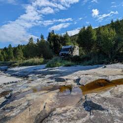 Nach dem Aufwachen in atemberaubender Landschaft und einer Gassirunde zur "spooky cave" machen wir uns auf den Weg, ohne echtes Ziel, einfach nur Richtung Norden, theoretisch 🤪 Wir fahren kurz nachEn savoir plus