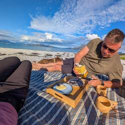 ... also fix die Stühle raus, am Strand frühstücken und beim Rauschen des Meeres etwas entspannen ☺️ Trotz des schönen Wetters beschließen wir dennoch weiter Richtung Norden zu fahren, außerEn savoir plus