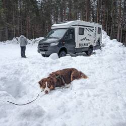 Nachdem wir am Morgen mehrfach die Schneehöhe beim morgentlichen Spaziergang vermessen haben und Aili wieder unzählige Schneepommeln im Fell sammelte, brechen wir Richtung Westen auf - der FjordRead more