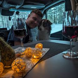 Wir finden ein schönes Plätzchen für die Nacht, Aili gräbt ein paar Höhlen (oder sucht Elch-💩), wir erkunden die Gegend und lassen den Abend mit einem Gläschen (alkoholfreien 🙈) Wein 🍷Read more