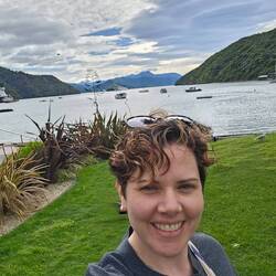 As I mentioned previously, one of New Zealand's main exports is timber. Here is one of the yards that holds the timber and fills orders. The ship was docked next to the yard, so lunch was spent watching them move logs from one pile to another and then stacking the logs higher.