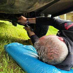 3 von 4 Stoßdämpfern machen noch mit, einer hat wegen Rost aufgegeben. 🙄😱🤷♂️