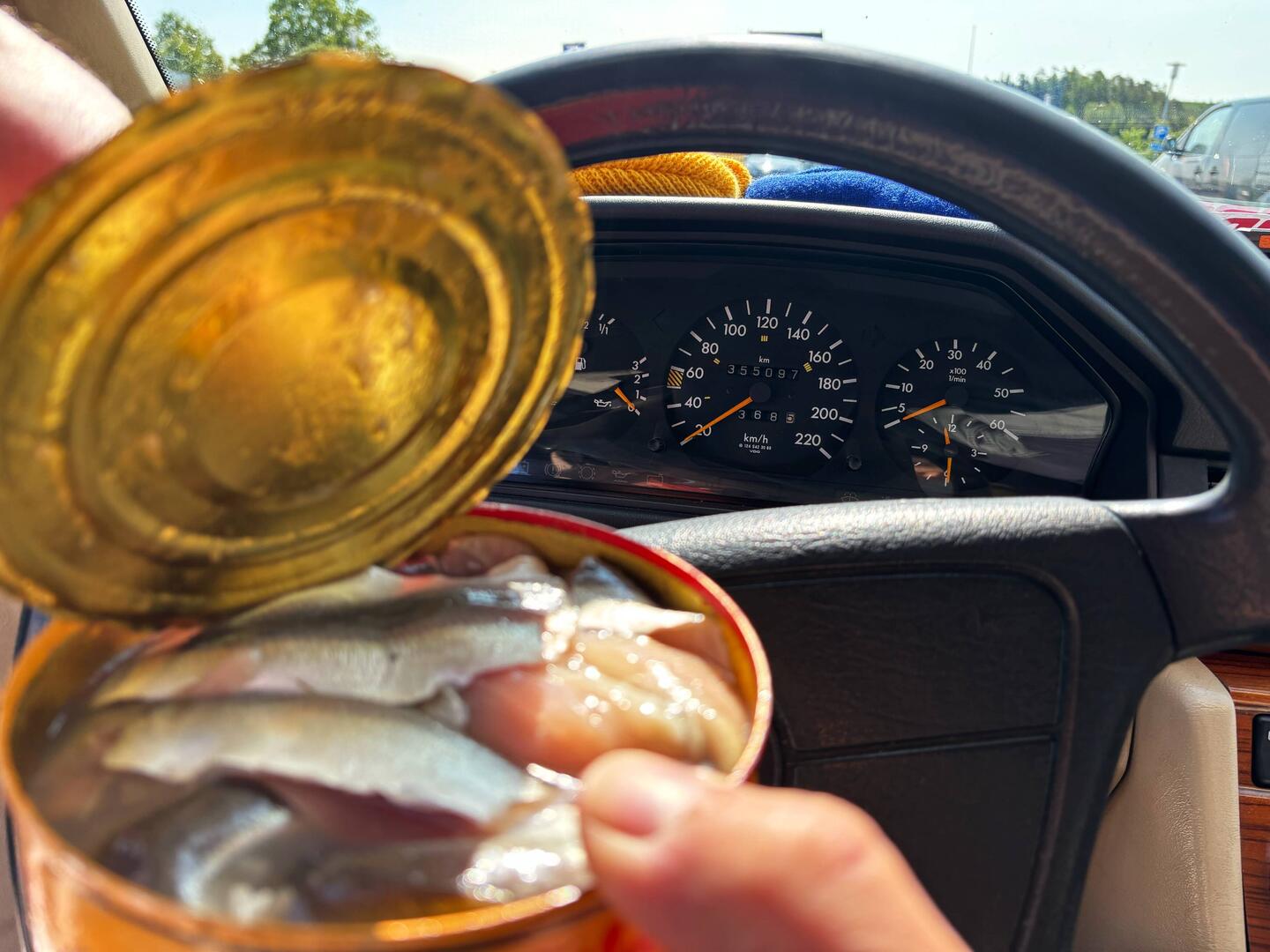 Today we take part in Surströmming challenge. It smells not that bad as expected but even bad enough. Now we are heading north towards Oslo. 💪