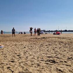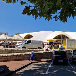 Heute war mal wieder ein Strandtag. Vorher haben wir aber noch die Kirche Notre-Dame de Royan besichtigt. Aber nur von außen, da gerade Gottesdienst war. Danach zur Markthalle und ein GrillhähnchenLeggi altro