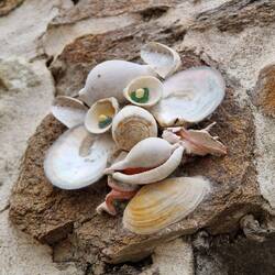 Nach dem Check-In sind wir ein bisschen die Promenade lang gelaufen und haben uns das Muschelviertel (Île Penotte) angeschaut. Super viele Kunstwerke aus Muscheln. Super! 🐚 Und natürlich mussteLeggi altro
