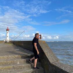 Als letzten Aussichtspunkt haben wir uns einen Leuchtturm mit tollem Blick auf die Brücke von Saint Nazaire ausgesucht. Danach ins Hotel und unser Abendbrot genießen. 🥖