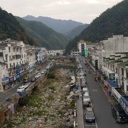 In der Kleinstadt Tangkou mitten im Huangshan Gebirge kommen wir in einem kleinen netten Hostel unter. Durch die Übersetzer Apps können wir mit den Gastgeber sprechen. Der Ort besteht zwar Dank des nahegelegenen Wandergebiets hauptsächlich aus Hotels und Gasthäusern, versprüht aber doch ländlichen Charm. So findet das Leben hauptsächlich auf der Straße statt, die durch einen Bergbach in 2 Teile geteilt wird. Es werden Nüsse und Gemüse getrocknet, Wäsche aufgehängt und allerlei Waren angeboten.