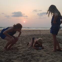 Anfangs sind alle Hütten an andere Touristen vermietet. Unter anderem an eine andere deutsche Familie mit zwei kleine Kindern, mit denen wir uns schnell anfreunden, und an einige feierfreudige Briten.