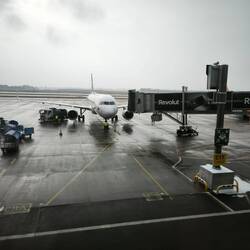 Leerer Flughafen - leerer Shuttle Bus - leider durch die Verspätung früh dunkel .