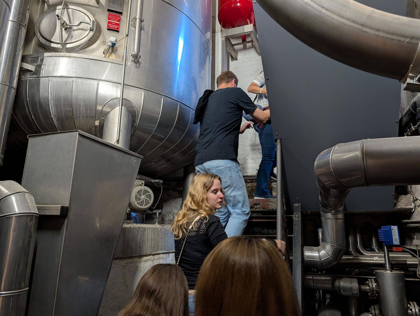 Tussen alle ketels door een rondleiding van de brouwerij met tussendoor op het dak een mooie uitzicht over de stad.