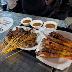 Een hele straat wordt hier ’s avonds afgezet puur voor het bakken van saté. Dat doen ze al ruim 130 jaar. Toen we aankwamen hing de hele straat vol rook en geur van houtskool. Het is simpel, drukWeiterlesen