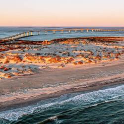 Hier gib's noch ein Camping der geöffnet hat. Für eine Nacht bezahlten wir über 100 $. Das Geld war er nicht im geringsten wert. Abends machten wir einen ausgedehnten Spaziergang an der schönen Bucht. Hier ist im Sommer bestimmt viel los, obwohl der Pier und er Rummelplatz am verfallen sind.Leer más