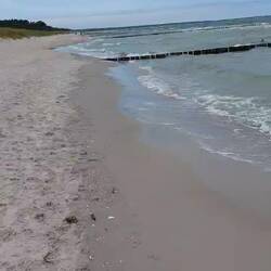 Auf dem Weg nach Zingst wandern wir überwiegend durch Wald und alle paar 100 m gibt's einen Strandzugang den nutzen wir auch hier und da um auch mal wieder direkt am Meer vorbeizugehen! Es erstaunt uns sehr, daß es einen sehr gepflegten, frisch gemähten seperaten Wanderweg gibt, der uns störungsfrei nach Zingst führt!
