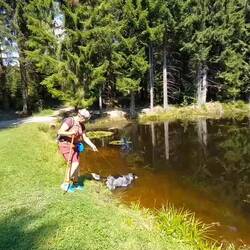 Entlang des Grenzbachs Preißhausbach erreichen wir den wunderschönen Preißhausteich mit toller Schutzhütte!