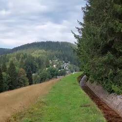 Der Regen hört auf, wir laufen wieder los und freuen uns auf den Gasthof Talsperre, der soll geöffnet haben!