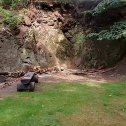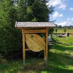 Hier gibt es eine Schutzhütte und eine schöne Sitzgelegenheit davor!