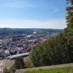 Ganz unverhofft haben wir plötzlich einen tollen Blick auf die Salzach, die Stadt Burghausen und die größte Burg Europas!