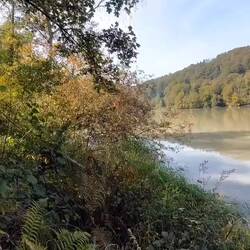 Auf dem Weg zum Inn, durch einen schönen herbstlichen Auenwald, kommen wir mit einer forsch daher schreitenden Senioren ins Gespräch! Sie erzählt, daß sie schon 40 mal in Bad Füssingen, hier ganz in der Nähe war, denn die Thermalbäder tun ihr soooo gut! 😁👍