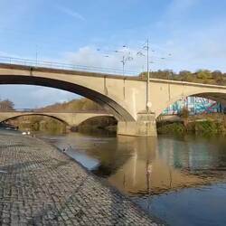 Nach einer kurzen Pause an der ehemaligen Saarfähre, verlassen wir dieses laute Getümmel und befinden uns schnell wieder, hoch über der Saar, im angenehm ruhigen Wald! Den verlassen wir nach einer guten Stunde wieder, das heutige Ziel ist im noblen Saarbrücker Vorort Klarentahl erreicht!