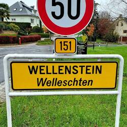 Im Zielort Eppeldorf, direkt neben der Kirche, steht ein großes Hinweisschild von unserem morgigen Ziel, dem Mëllerdall, oder Mullerthal, oder Müllerthal, jeh nach dem!