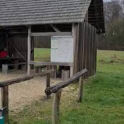 Dann kommen wir zur ersten Hütte auf Pfälzer Boden, der sehr großzügigen Gimpelwaldhütte vom Pfälzerwald-Verein!
