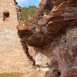 Auf einer der Burgen trafen wir ein älteres Ehepaar, die beiden waren die einzigen Menschen, mit denen wir dieses Buntsandstein Spektakel teilen mussten!