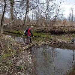 Wir steigen von der Hochebene ab und landen im Tal des Hornbachs! Der bildet hier die Grenze und an ihm laufen wir über eine Stunde, mehrmals über kleine Brücken die Seite wechselnd, vorbei!