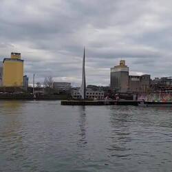 Wir verlassen die Stadt und befinden uns im riesigen Hafenbereich! Container Terminals, Gas- und Ölspeicher beherrschen die Szenerie, aber unser Wanderweg bleibt direkt am Rhein! Gigantische Containerkräne rollen direkt an uns vorbei, schier unglaublich!