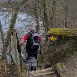 Kaum haben wir das Städtchen verlassen, befinden wir uns wieder auf schmalen Pfaden, heute überwiegend im Buchenwald! Die Wegführung ist wieder sehr abwechslungsreich, rauf und runter über steile Treppen, aber immer den Rhein im Blick! Ja, es gibt ein richtiges Steilufer, 20-30 m über dem Rhein, wir fühlen uns ein bisschen wie an der Ostsee!