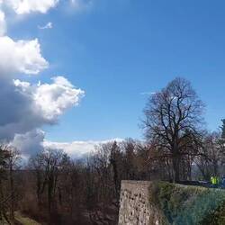 Eine Wanderin aus der Schweiz erzählt uns, in 2 Monaten bin ich Rentnerin und dann geht's los! Jetzt läuft sie an freien Tagen die ViaRhenana, Stück für Stück! Bei toller Fernsicht erreichen wir wenig später eine neue Rekordhöhe, sagenhafte 592 m! Auf dem Abstieg zum heutigen Ziel, liegt noch die Ruine der Neuburg und auf schmalen, teilweise neuangelegten Pfaden, erreichen wir Schloss Glarisegg! Eine wunderbare achtstündige Wanderung liegt hinter uns!