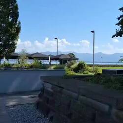 Gegen 9 Uhr machten wir uns auf den Weg nach Dingelsdorf, hier wollen wir um 10 Uhr die Fähre nach Überlingen nehmen! Vorher noch einen gemütlichen Kaffee im Restaurant am Fähranleger! Nur 15 Minuten dauert die Fahrt auf die gegenüberliegende Seite und hier bekommen wir endlich ein vernünftiges Frühstück! Frisch gestärkt geht's nun Richtung CP in Birnau! Fast immer den Bodensee in Sichtweite führt unser Weg teilweise über seperate Fusswege, aber auch über den Bodensee Radweg, wo ordentlich was los ist! Kaum mal ein Blick auf den See, ohne das wir darin schwimmende Menschen sehen! Quasi wird überall geschwommen! Eine Trinkpause gerät etwas zu lang und deshalb kommen wir 6 Minuten zu spät an unseren CP! Erst 2 Stunden später erfahren wir das wir einen der letzten Plätze ergattern! Alle CP sind eigentlich ausgebucht!! Schwein gehabt! Am späten Nachmittag haben wir eigentlich einen schon lange verabredeten Termin in der Waldrappe Aufzucht Station in Überlingen! Den verschieben wir aber auf unseren Abreisetag, also Ende nächster Woche! Dann hat das Mädel von der Station Urlaub und etwas mehr Zeit für uns!🙂👍 Aber keine Langeweile kommt auf denn Southbounds, der ganz in der Nähe wohnt, kommt vorbei und wir gehen gemeinsam nach Unteruhldingen, hier gibt's Originalnachbauten von historischen Pfahlbauten zu bestaunen und unser Besuch zeigt uns ein tolles Restaurant direkt am See, hier gibt's die regionale Spezialität, Dinnele! Auch hier ist eigentlich alles ausgebucht, aber wir bekommen trotzdem den besten Tisch, der steht quasi im Bodensee! Dinnele sind eine Art Flammkuchen und unsere waren mit geräuchertern Bodenseefelchen belegt!