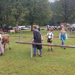 Punkt 9:30 Uhr läuft die erste Alpe mit etwa 200 Stück Vieh, unter ohrenbetäubendem Geläut, auf der Festwiese ein! Das Leittier ist festlich geschmückt, aber nur wenn es auf der Hochalm keinen tödlich Unfall gab! Alle Tiere tragen zu diesem besonderen Anlass, riesige Glocken um den Hals, das gilt auch für die Esel!