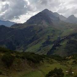 Wir genießen noch eine ganze Zeit diese großartige Aussicht und zwar nur wir beide! Da wir Richtung Lechleiten in Österreich absteigen wollen, müssen wir zuerst noch etwas höher zur Zollhütte aufsteigen, die liegt auf 1950 m! Das sagt uns ein Ranger, der zufällig hier oben zu tun hat! Mit ihm sprechen wir noch eine Weile und er empfiehlt uns den sehr steilen, aber auch schnellsten Abstieg nach Lechleiten! Mit Blick auf dem wunderbaren Biberkopf schaffen wir den 2 km langen Abstieg über 500 hm hinunter ins Lechtal in 90 min.! Der Rest folgt morgen, es ist schon spät und wir sind sehr müde!